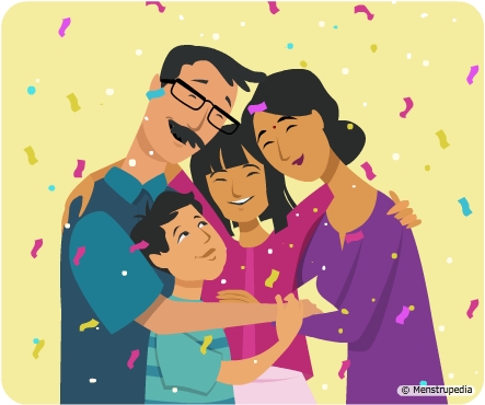 Last, but not the least, relieve her of her hard day by celebrating. Let people in the family know, and celebrate in small ways that make her happy. You can gift her a period kit, take her on a fun trip to the sanitary pad aisle of a store and familiarise her with the products, watch a movie, throw her a small party or even something as simple as a hug will do. This shows that even if it has been slightly unpleasant so far, periods can be a welcome transition to a remarkable time in her life.